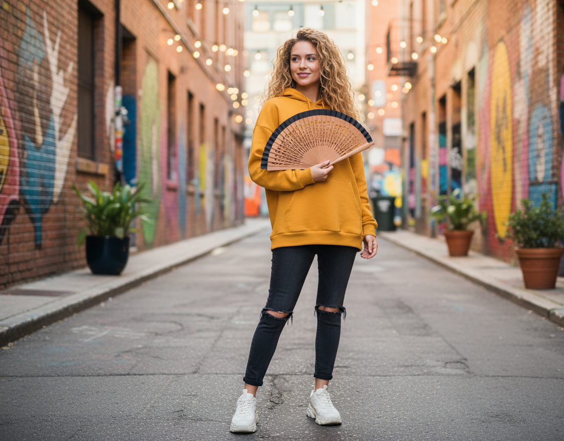 Aparentemente sencillo, el abanico artesanal Brisa tallada revela su verdadera belleza en los delicados calados de su varillaje, trabajados con precisión y elegancia.